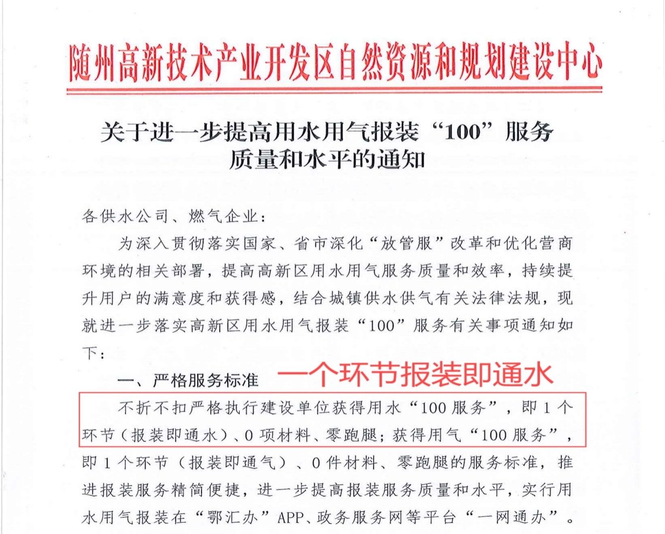 1.關(guān)于進(jìn)一步提高用水用氣報裝“100”服務(wù)質(zhì)量和水平的通知
