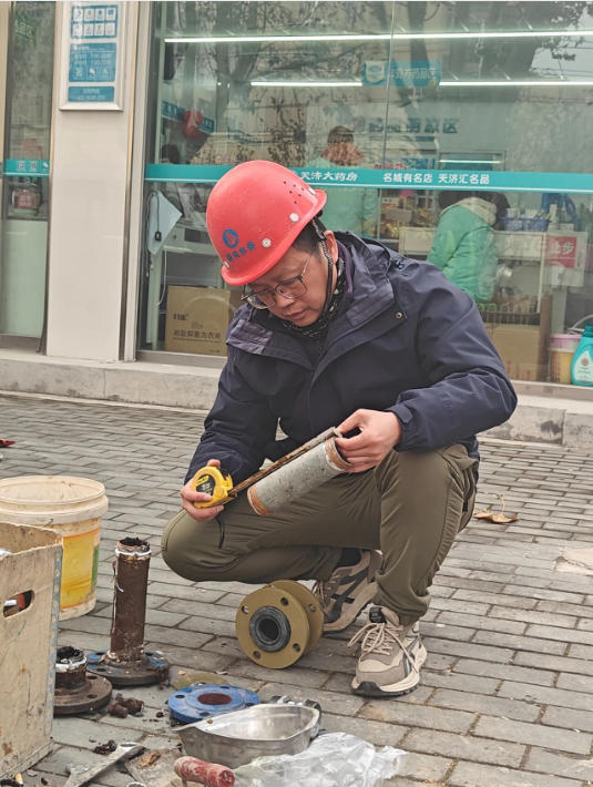 2025年7月,又一嚴(yán)峻考驗(yàn)降臨,交通大道兩水段突發(fā)區(qū)域性停水。故障就是沖鋒號(hào),劉吉再次主動(dòng)請(qǐng)纓,率隊(duì)緊急出動(dòng),戶外溫度直逼40攝氏度。頂著烈日,劉吉帶領(lǐng)隊(duì)員們,沿著疑似管線段進(jìn)行地毯式徒步排查,最終確定故障點(diǎn)位于一處橋梁下方的穿橋主管道。